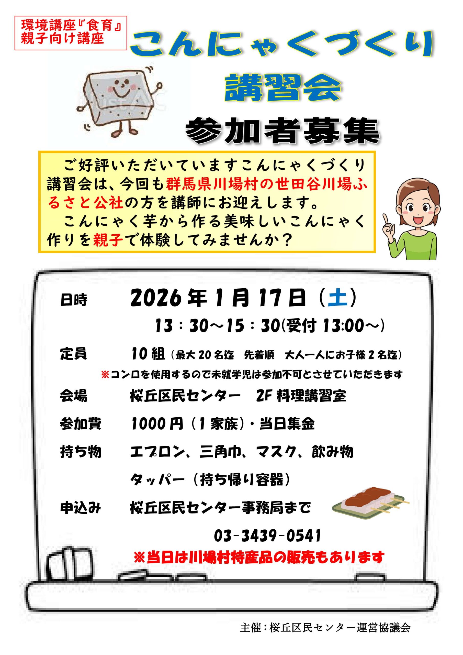 [1/17]「こんにゃくづくり講習会」参加者募集 2025年12月7日 最終更新日時 : 2025年12月7日 tsuboiyoji こんにゃくづくり講習会を1月17日(土)に開催します。こんにゃく芋から作る美味しいこんにゃく作りを親子で体験してみませんか?