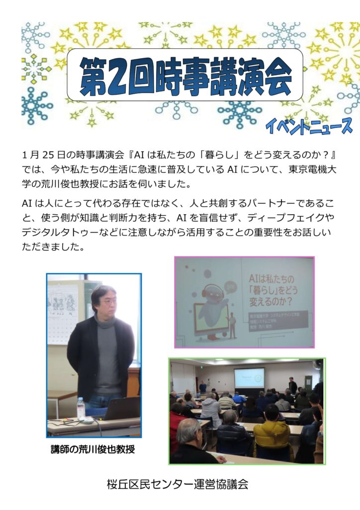 1月25日(日)に開催された「第2回時事講演会」の様子を報告します。
