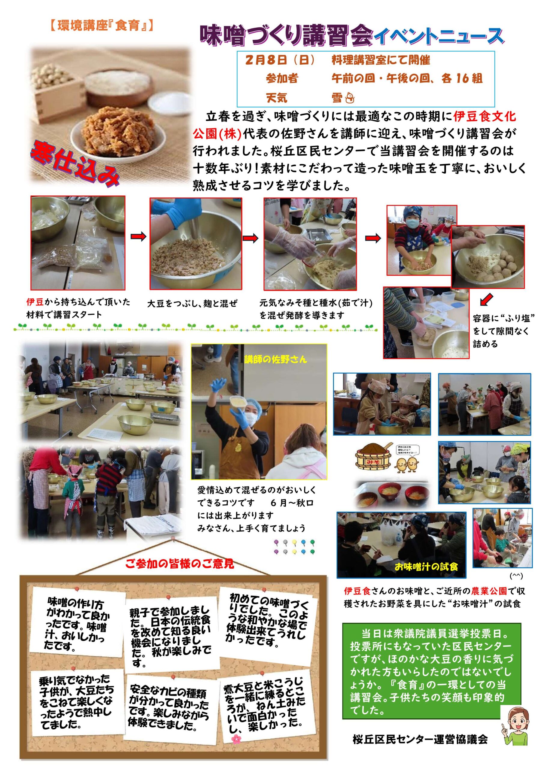 2月8日(日)に開催された「味噌づくり講習会」の様子を報告します。