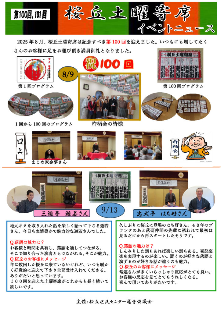 [8/9, 9/13]「桜丘土曜寄席」 報告 2025年10月16日 最終更新日時 : 2025年10月16日 tsuboiyoji 8月9日と9月13日に開催された「桜丘土曜寄席」の様子を報告いたします。
