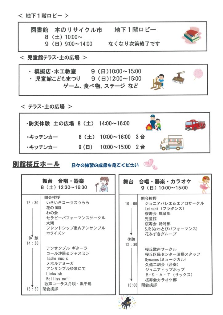 令和7年度(2025年度)の桜丘区民センターまつりは、11月8日・9日の開催を予定しています。
