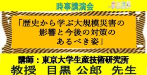 時事講演会「歴史から学ぶ大規模災害の影響と今後の対策のあるべき姿」を開催します。参加費は無料です。皆様奮ってご参加ください。